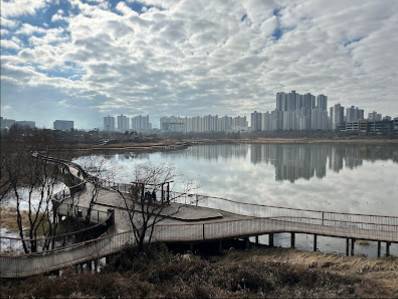 주변 음식점에서 식사를 마치고 걷기운동 하기에 안성맞춤 공원입니다. 최대한 가장자리로 한바퀴 도는 데에 40~50분 걸립니다. 공원에는 억새갈대가 상당히 넓게 자리하고 있고 버드나무숲도 꽤 구모가 큽니다. 청둥오리떼도 있고 연꽃무리도 군데근데 자리합니다.